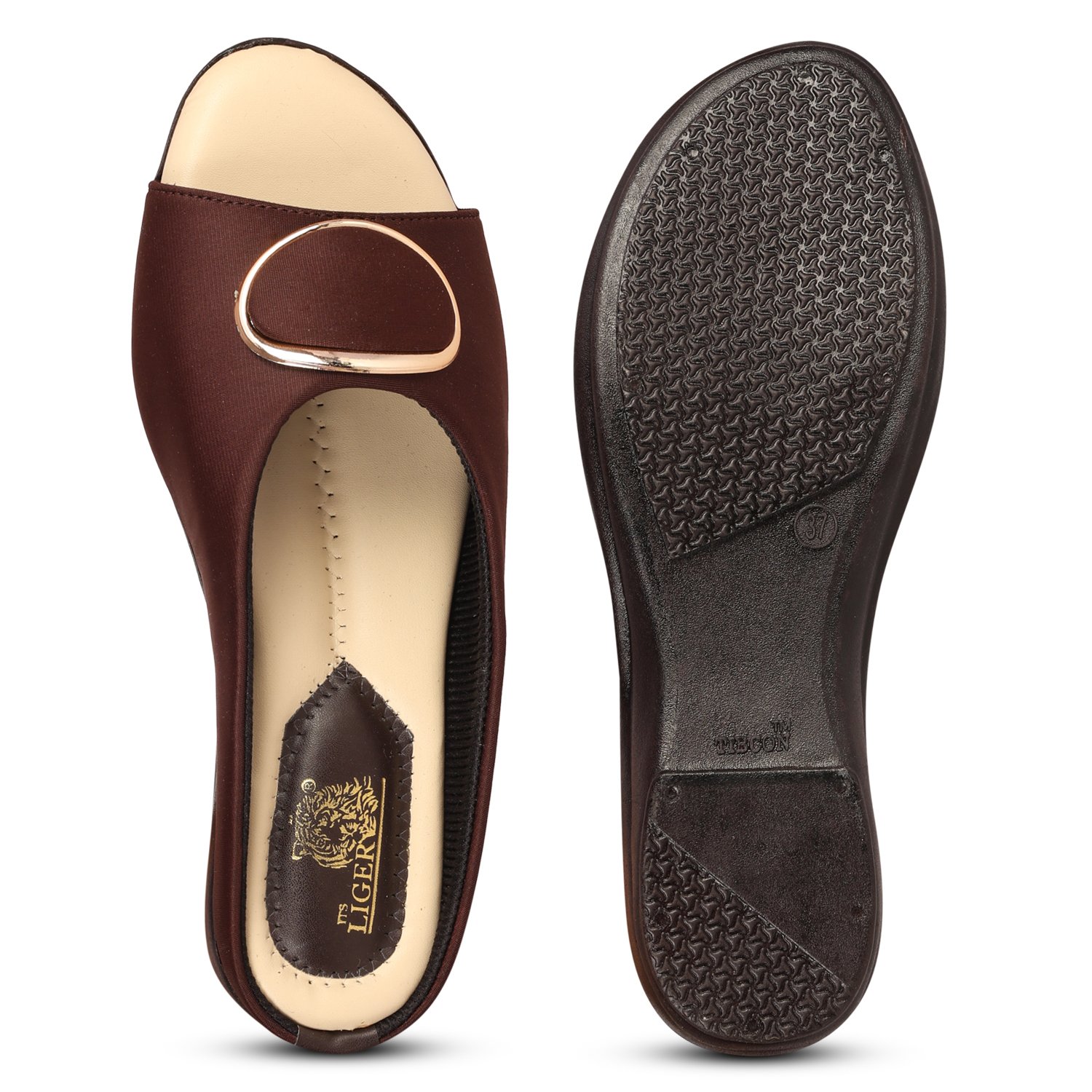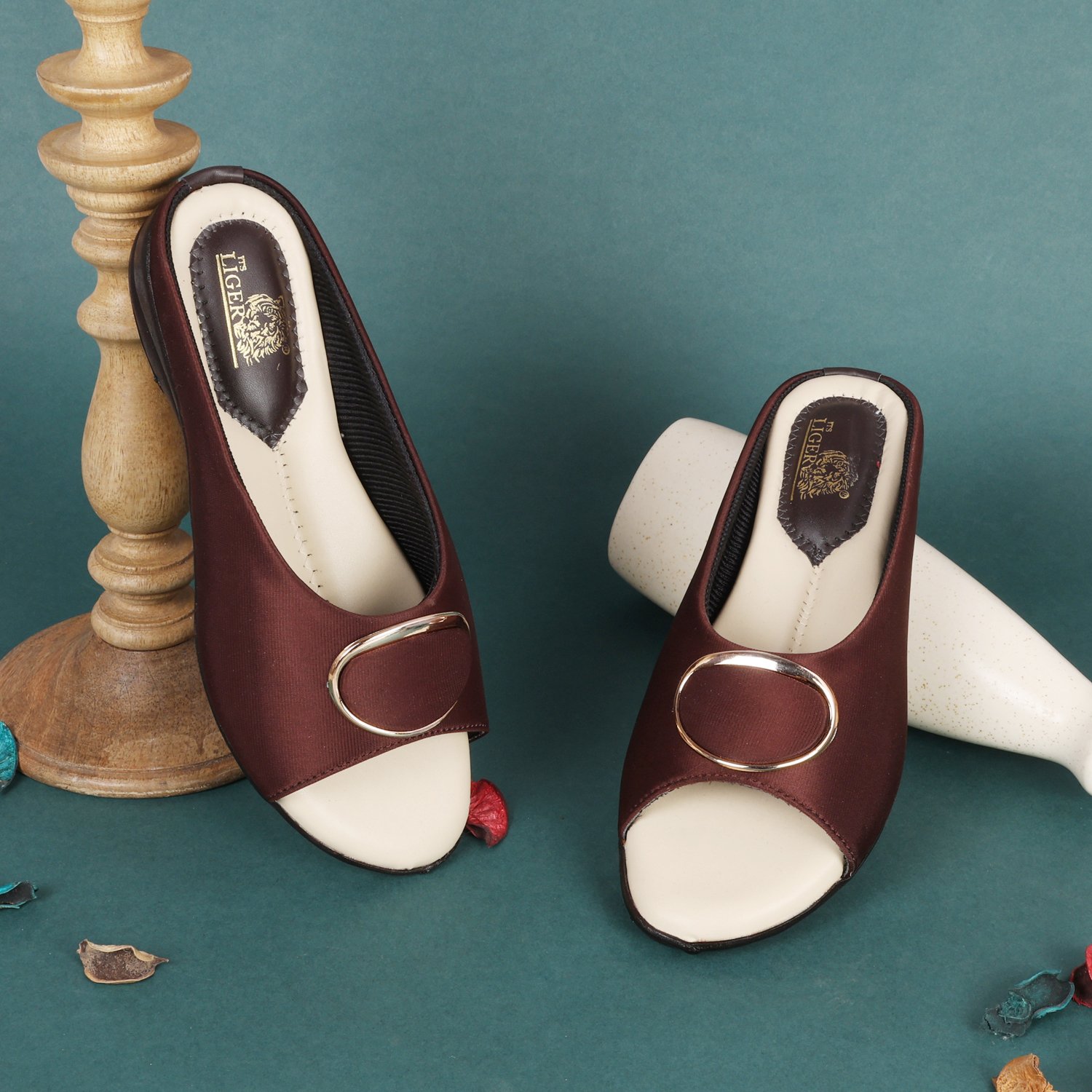 ITS LIGER Elegant Open-Toe Mules with Gold Buckle Accent